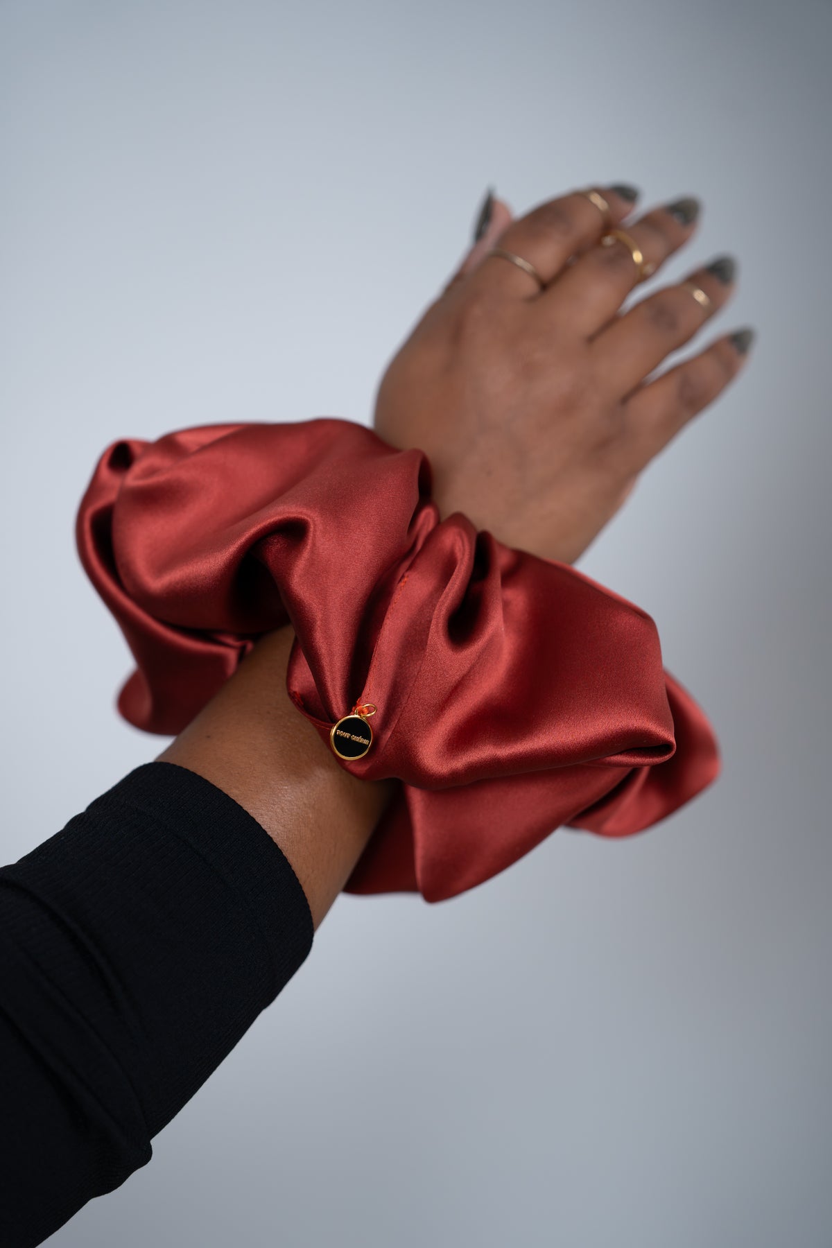 Go bold or go home. This oversized silk scrunchie is couture-level drama, handcrafted from one of the heaviest and most opulent silks in the world. Plush, voluminous, and unapologetically glamorous, it sculpts the perfect oversized statement whether wrapped around a sleek ponytail, messy bun, or worn on the wrist.
